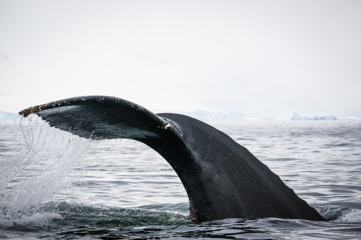 Sehr eindrücklich waren auch unsere Begegnungen mit den Walen. Rund um die antarktische Halbinsel gibt es sehr viele Buckelwale. Diese eindrücklichen Tiere konnten wir vom Zodiac aus beim Schlafen (was uns einige Geduld abforderte) aber auch bei der gemeinsamen "Bubble"- Jagd beobachten. Bei dieser Jagd schwimmen die Tiere im Kreis, tauchen dabei und stossen dann Luftblasen aus, die für die "eingeschlossenen" Fische und Krebse wie ein Netz wirken. Beim Auftauchen öffnen sie ihr grosses Maul mit den Barten und schlucken so die gefangenen Fische und Krebse. Ebenfalls eindrücklich sind die Laute, mit denen sie miteinander kommunizieren.